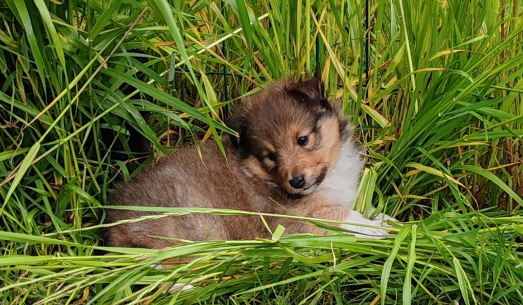 Vedette est élevée avec son frère et ses soeurs auprès de mes Shetland adultes afin de lui permettre l'acquisition des bons codes sociaux, ceci vous permettant d'appréhender les futures rencontres avec d'autres congénères sereinement.