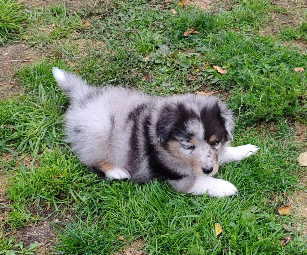 Voyou est élevé auprès de mes Shetland adultes afin de lui permettre l'acquisition des bons codes sociaux, ceci vous permettant d'appréhender les futures rencontres avec d'autres congénères sereinement.